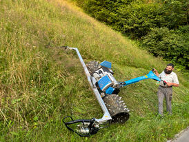 Sichere und einfache Handhabung am bis zu 120% steilen Hang gepaart mit einem bis zu 3.14m breiten Mähsystem: Das ist der Rapid Monta!